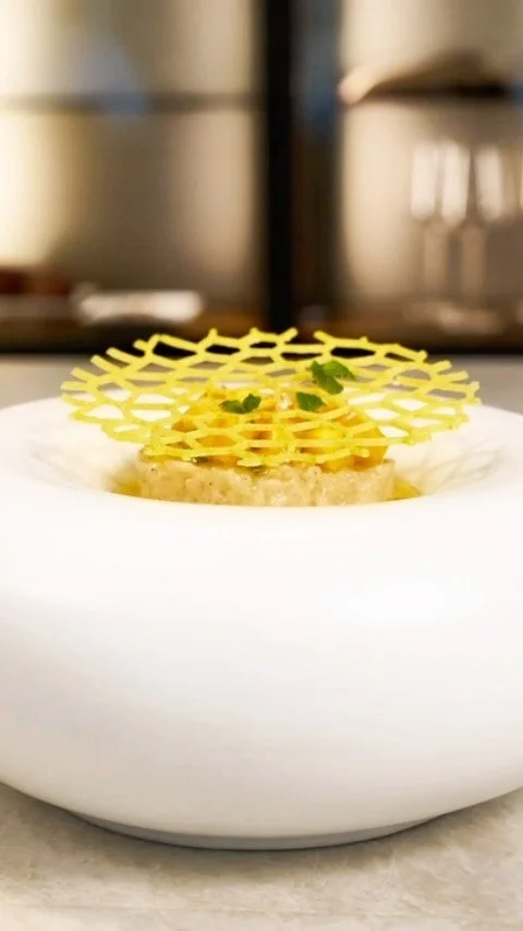 Dieses vegane Steinpilz-Risotto kombiniert cremigen Risottoreis mit intensiven Aromen von Steinpilzen, gerösteten Pekannüssen und würzigem Ingwer-Rosenkohl, veredelt durch einen luftigen Champagnerschaum. Ein Gericht, das die vegane Sterneküche in Deutschland auf den Teller bringt – elegant, geschmackvoll und einfach zuzubereiten.